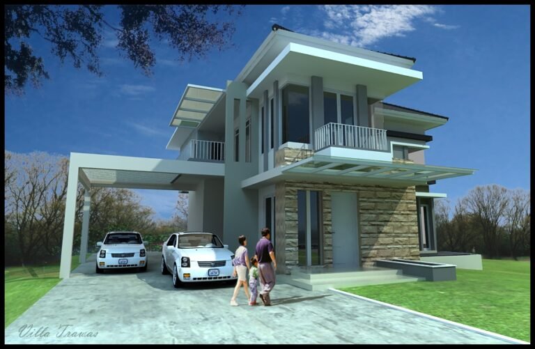 b. Gambar Render Kasar 3D Exterior (belum sejernih final render), dimana klien akan dibuatkan 10-50 view bangunan untuk mempresentasikan tampilan bangunan dan suasana exterior bangunan.