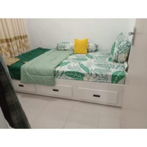 Kepuasan Anda adalah prioritas kami. Kami memberikan Garansi Perawatan selama 2 bulan. Jika ada engsel yang miring, rel laci yang kurang lancar, atau lapisan HPL yang memerlukan penyesuaian, tim kami akan datang untuk memperbaikinya tanpa biaya tambahan.