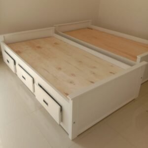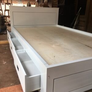 Furniture di toko umumnya menggunakan MDF atau Particle Board (kayu serbuk yang dipadatkan) yang mudah mekar jika lembap. Di High Point Furniture, kami menggunakan Multiplek/Plywood 18mm Grade A. Material ini jauh lebih kuat, tahan sekrup, dan lebih awet terhadap suhu lembap maupun rayap.